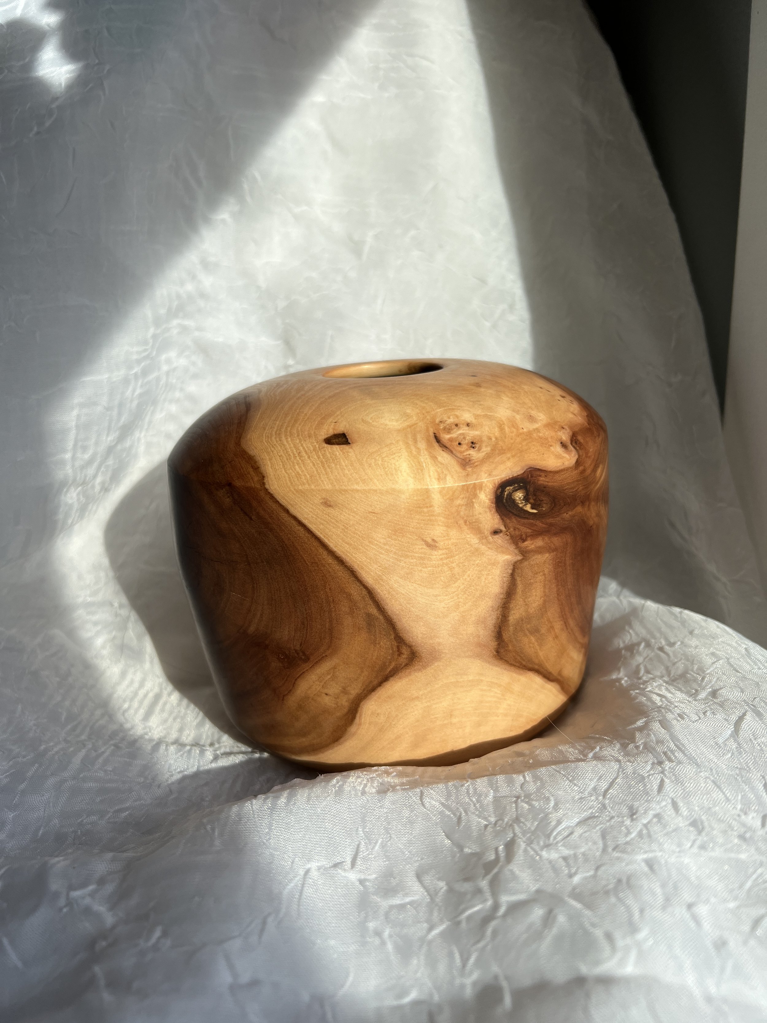 Tim is a software engineer and girl dad by day, but during his free time, he is a self-taught woodworker that specializes in hand turned bowls, dishes and vases. “Enchanted Turnings” is the place where artisanal work workings are Made from fallen trees all over New England. Tim has been crafting items for dining tables, desks, countertops and more for many years and HIs work was recently featured at The Florence Griswold Museum’s, “Wee Faerie Village” exhibition as part of Little Small & Co.’s installation. But Tim doesn’t just walk thru the forest and turn stumps into something spectacular. He walks the walk! Alongside his wife Mel, an accomplished Microbiologist and entrepreneur, the pair work together to farm their land, tend to chickens and roosters and make jams and other jarred goods in an effort to grow what they eat and respect the land.