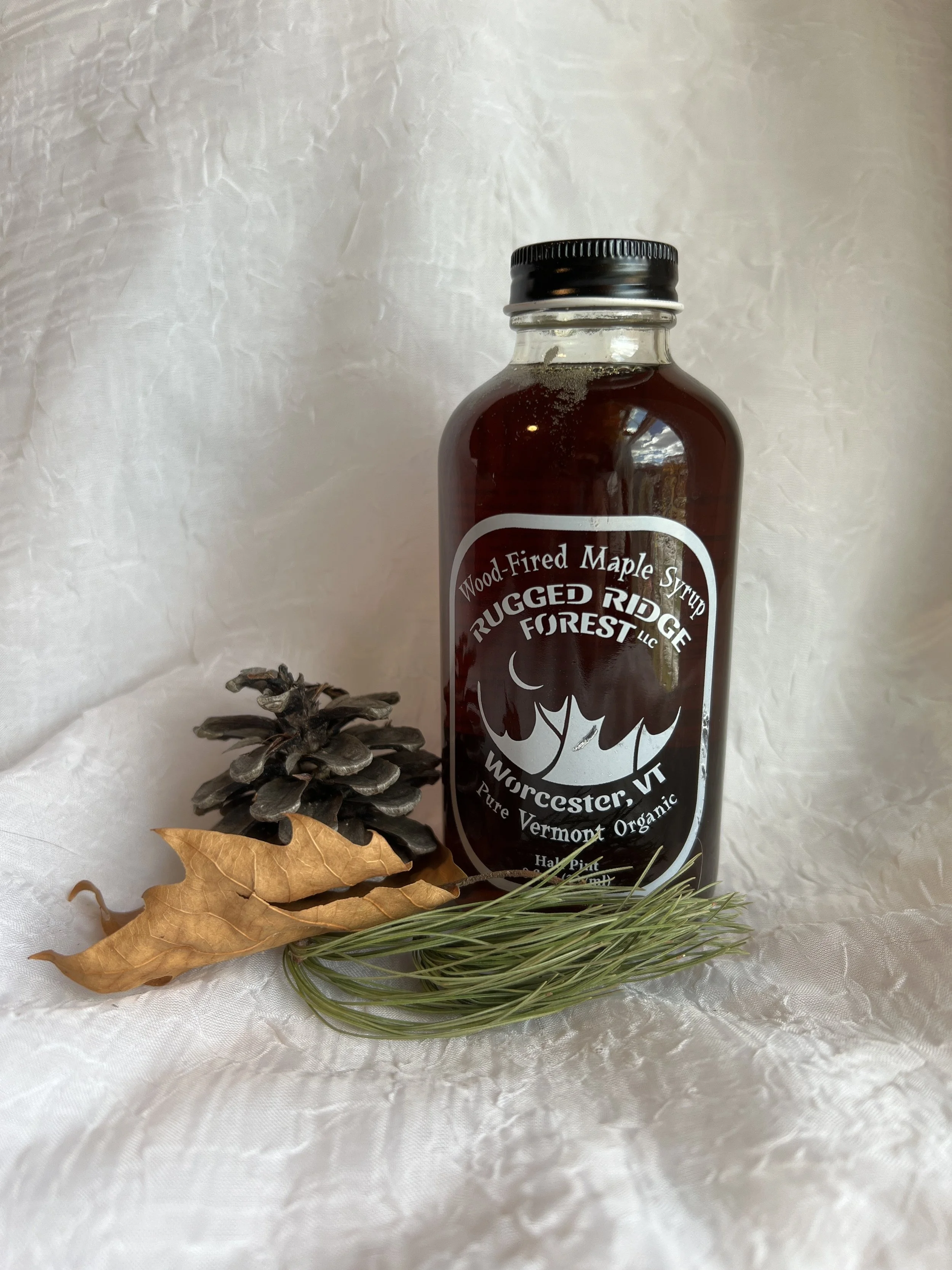 From over 400 acres of forest, deep in the woods of Vermont, a natural clearing makes way for the land hugging headquarters of, “Rugged Ridge Forest.” Owned and operate by Josh Seidman, RRF taps their own trees to make delicious maple syrup onsite. Founded in 2014, Josh and his team have been brewing syrup by wood firing which is the traditional way of making syrup. alternative means of steam producing or Oil producing are more commonly practiced but come at a major cost to the taste and quality of the syrup and are irreversibly detrimental to the environment. BY wood firing their operations, RRF offers complex, richly flavored and beautifully colored syrups for your morning pancakes, homemade granola and other delights.